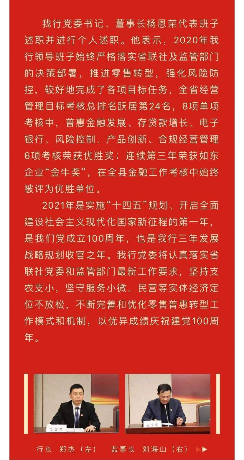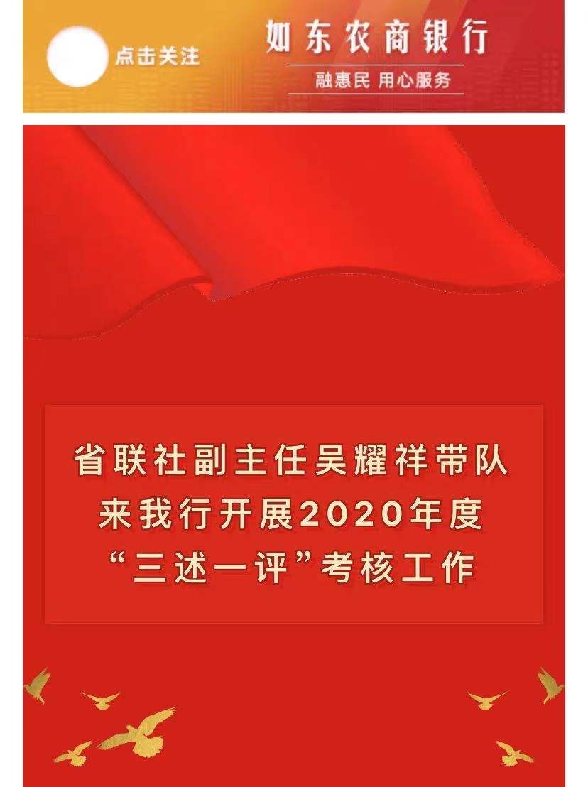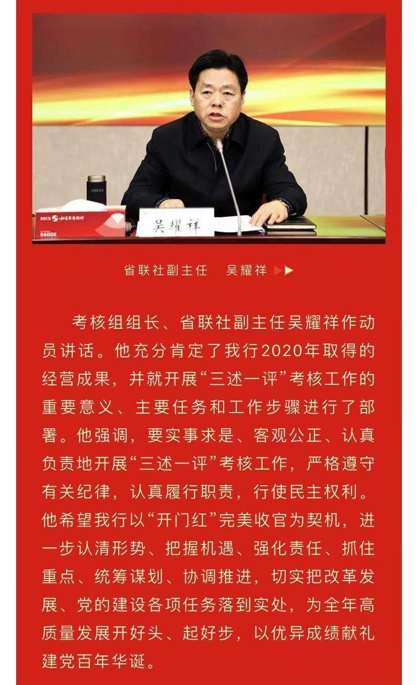 省联社副主任吴耀祥带队来我行开展2020年度“三述一评”考核工作